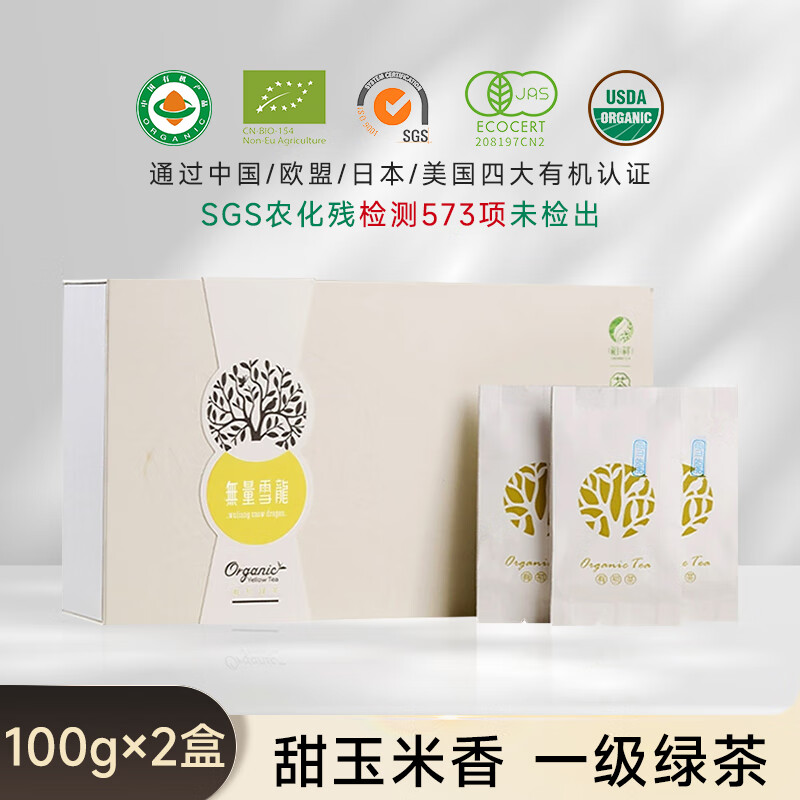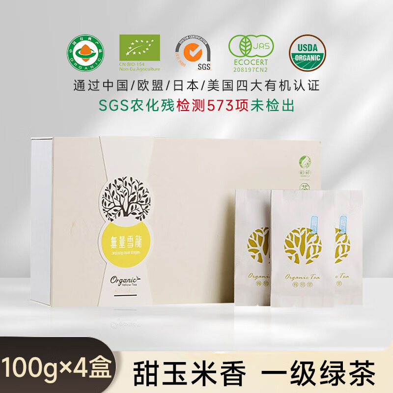 祖祥简素礼无量雪龙一级有机云南滇绿茶2024年独立20袋礼盒装100g 100g