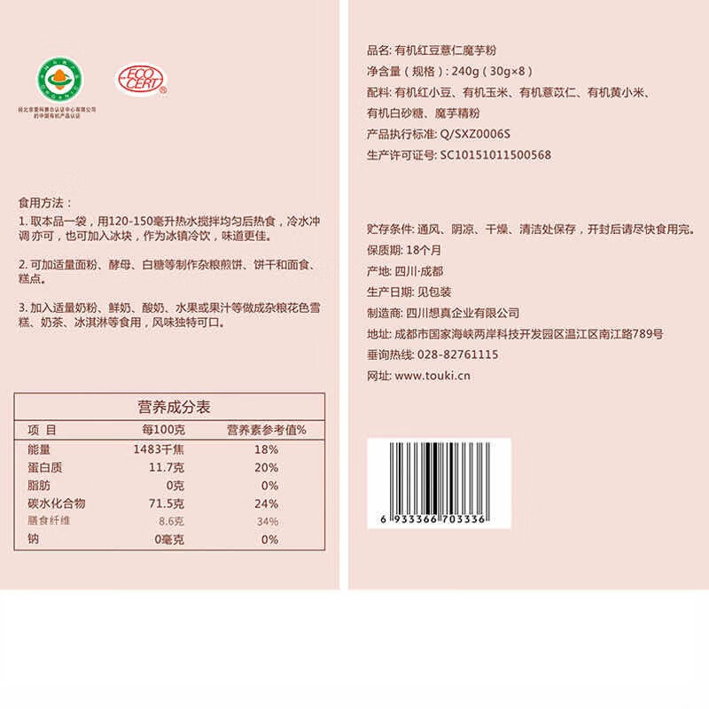 想真 有机薏仁红豆粉 240g罐装(30g*8)