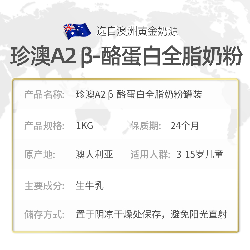 澳大利亚进口 珍澳A2β-酪蛋白全脂奶粉(罐装)1000g