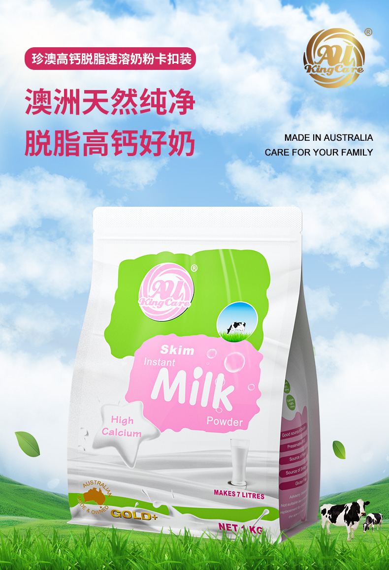 澳大利亚进口 Au Kingcare 珍澳高钙全脂奶粉(袋装)1000克