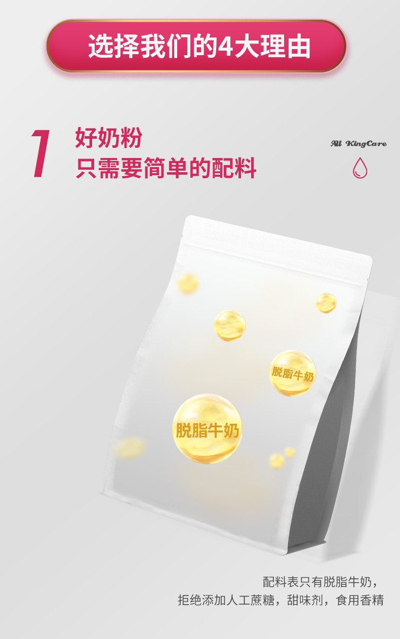 澳大利亚进口 Au Kingcare 珍澳高钙脱脂速溶奶粉(便携袋装)480g