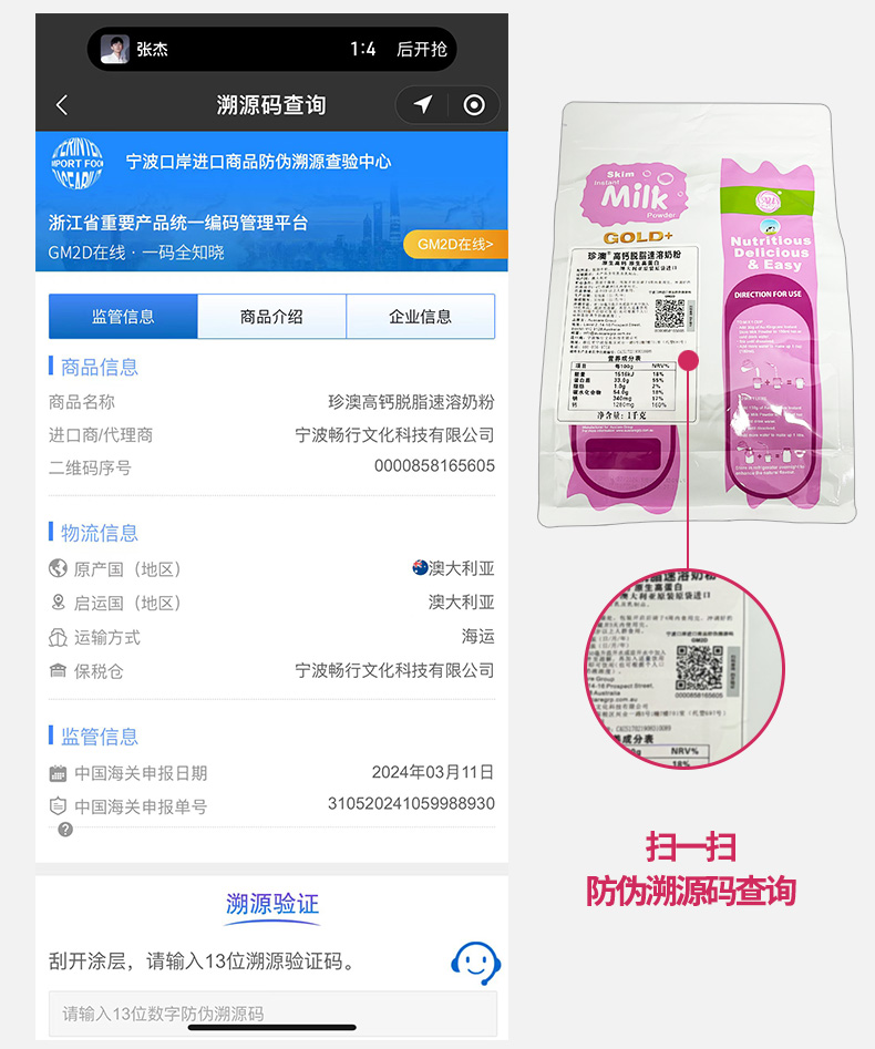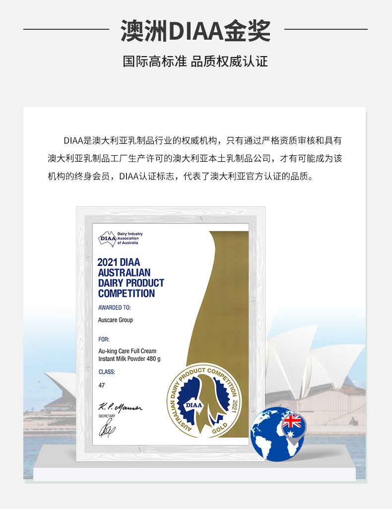 澳大利亚进口 Au Kingcare 珍澳高钙速溶奶粉(便携袋装)480克