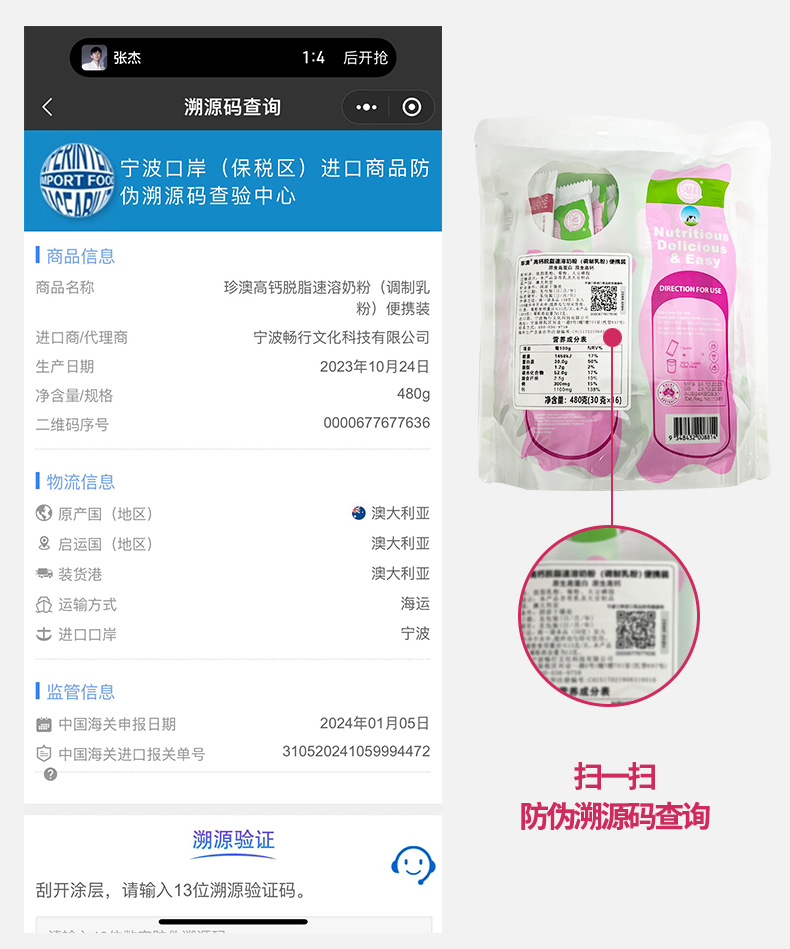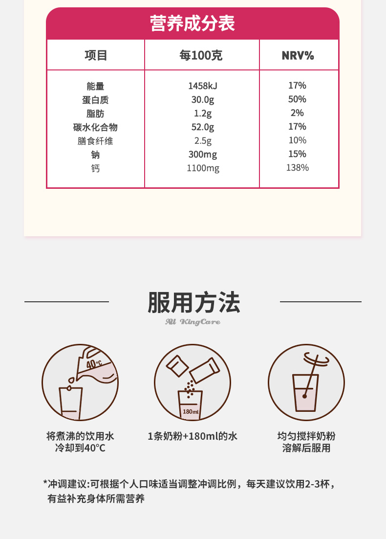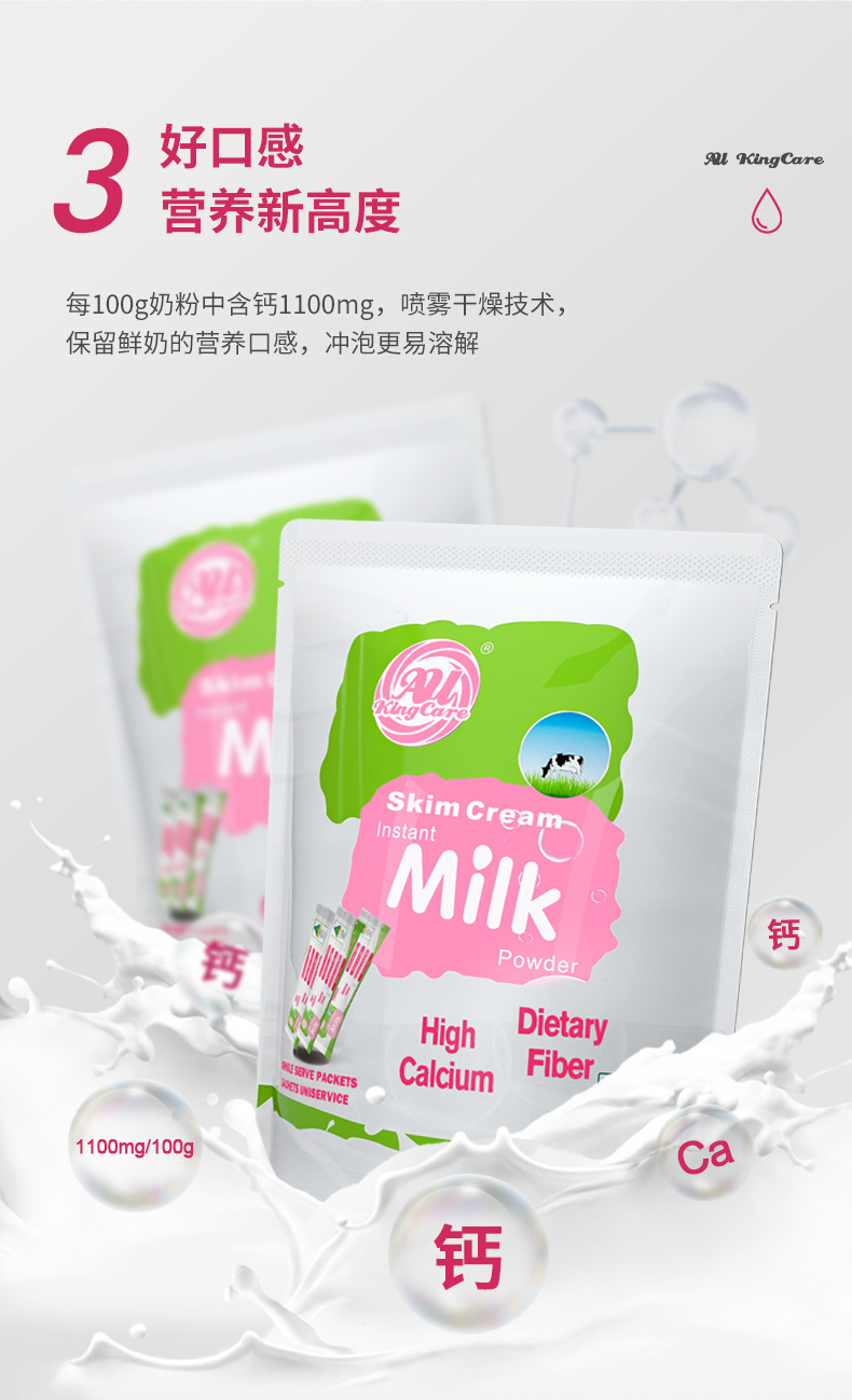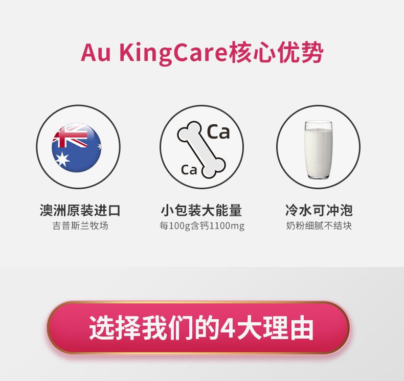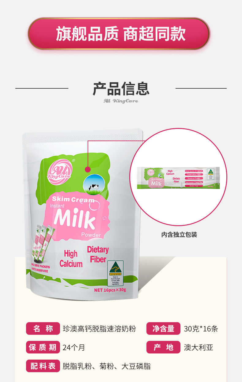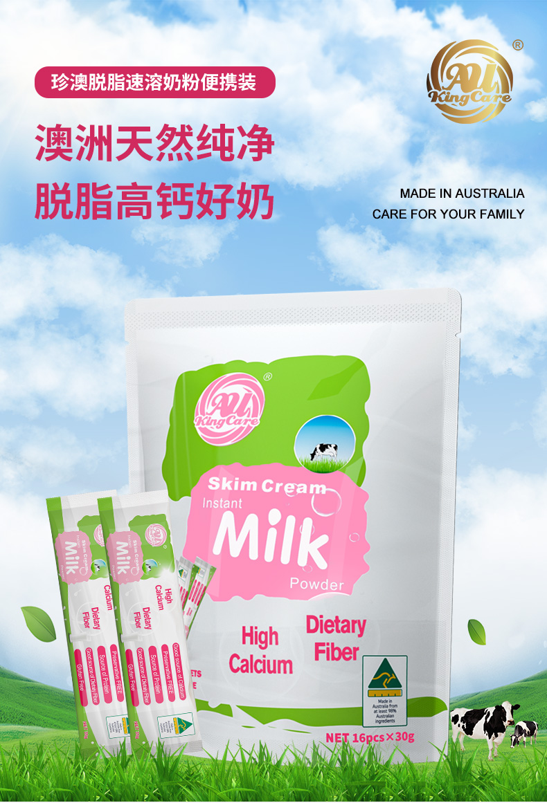 澳大利亚进口 Au Kingcare 珍澳高钙脱脂速溶奶粉(便携袋装)480g