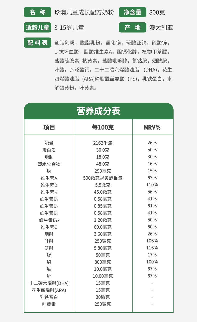 澳大利亚原装进口儿童 配方 成长型奶粉