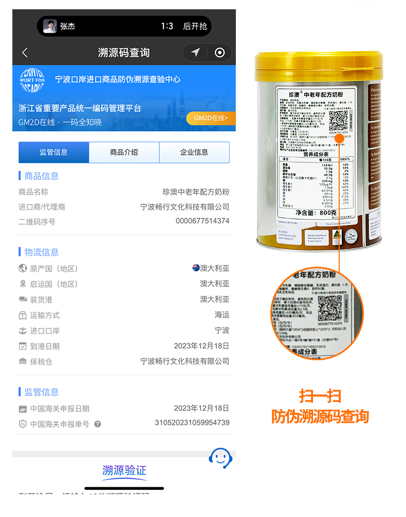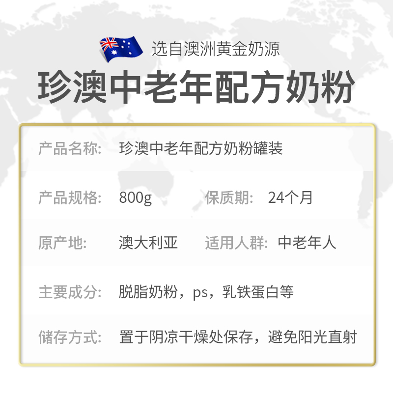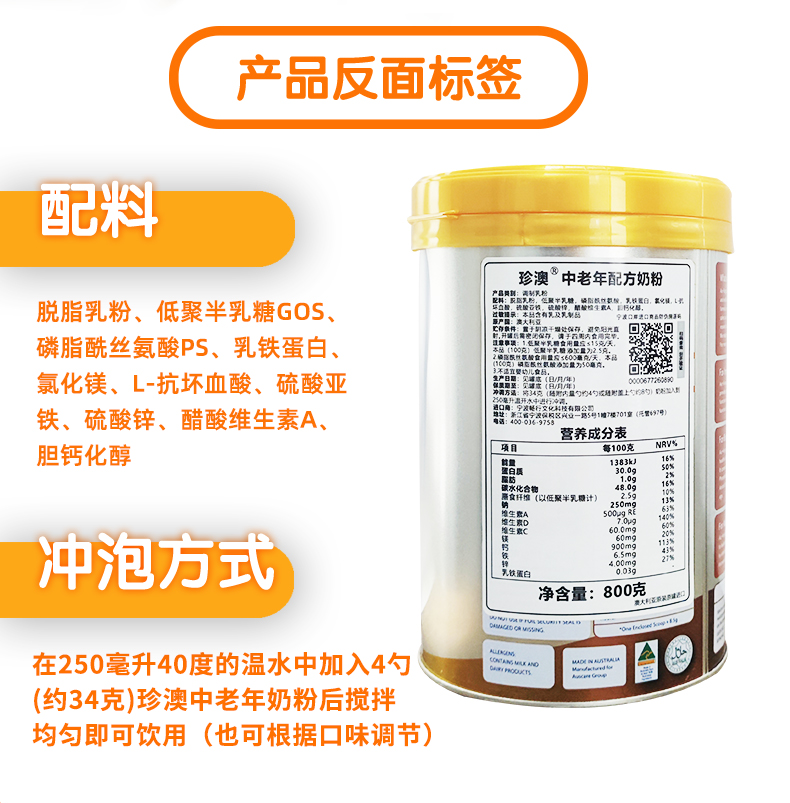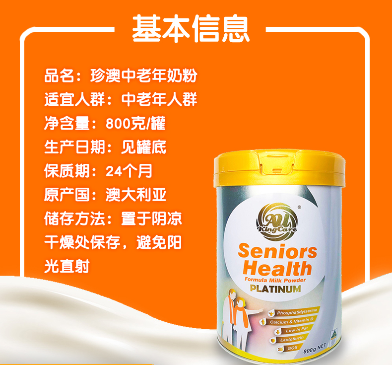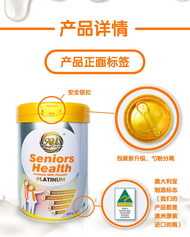 澳大利亚进口 Au Kingcare 珍澳中老年配方奶粉(罐装)800g