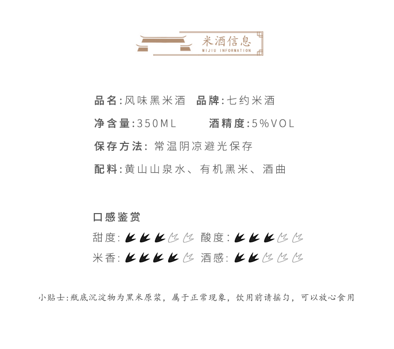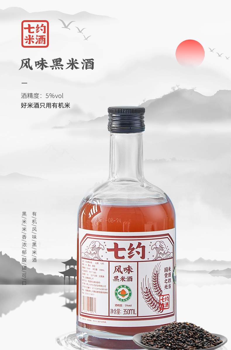 七约5度微醺系列 有机风味黑米酒5%vol 350ml
