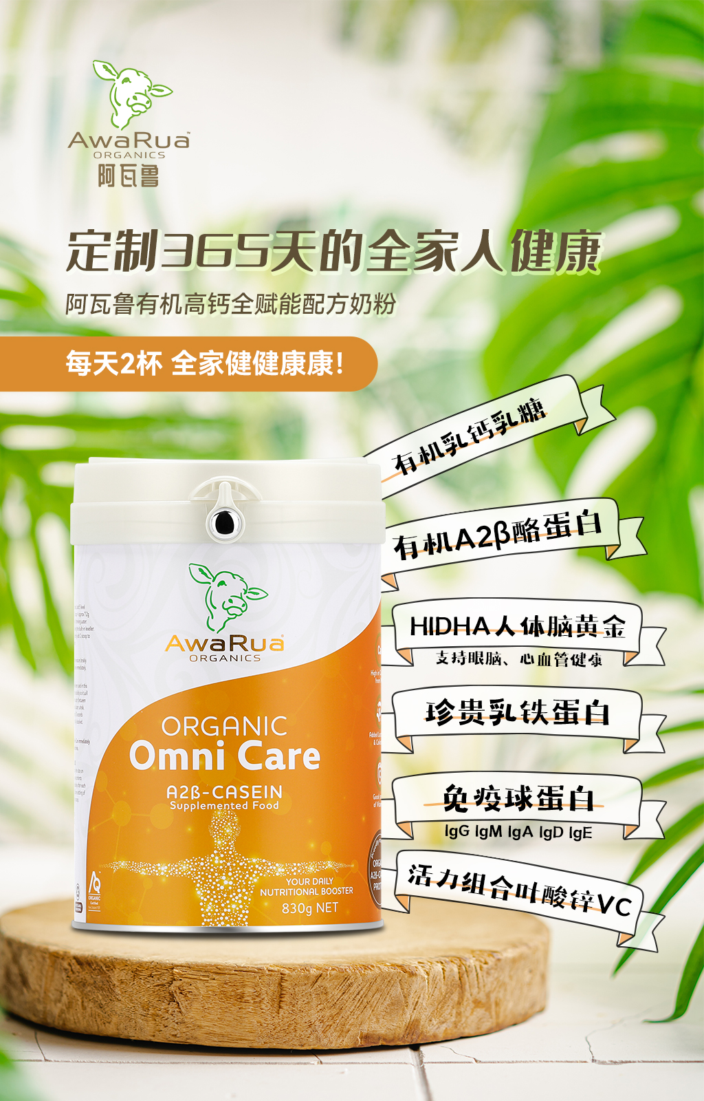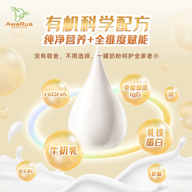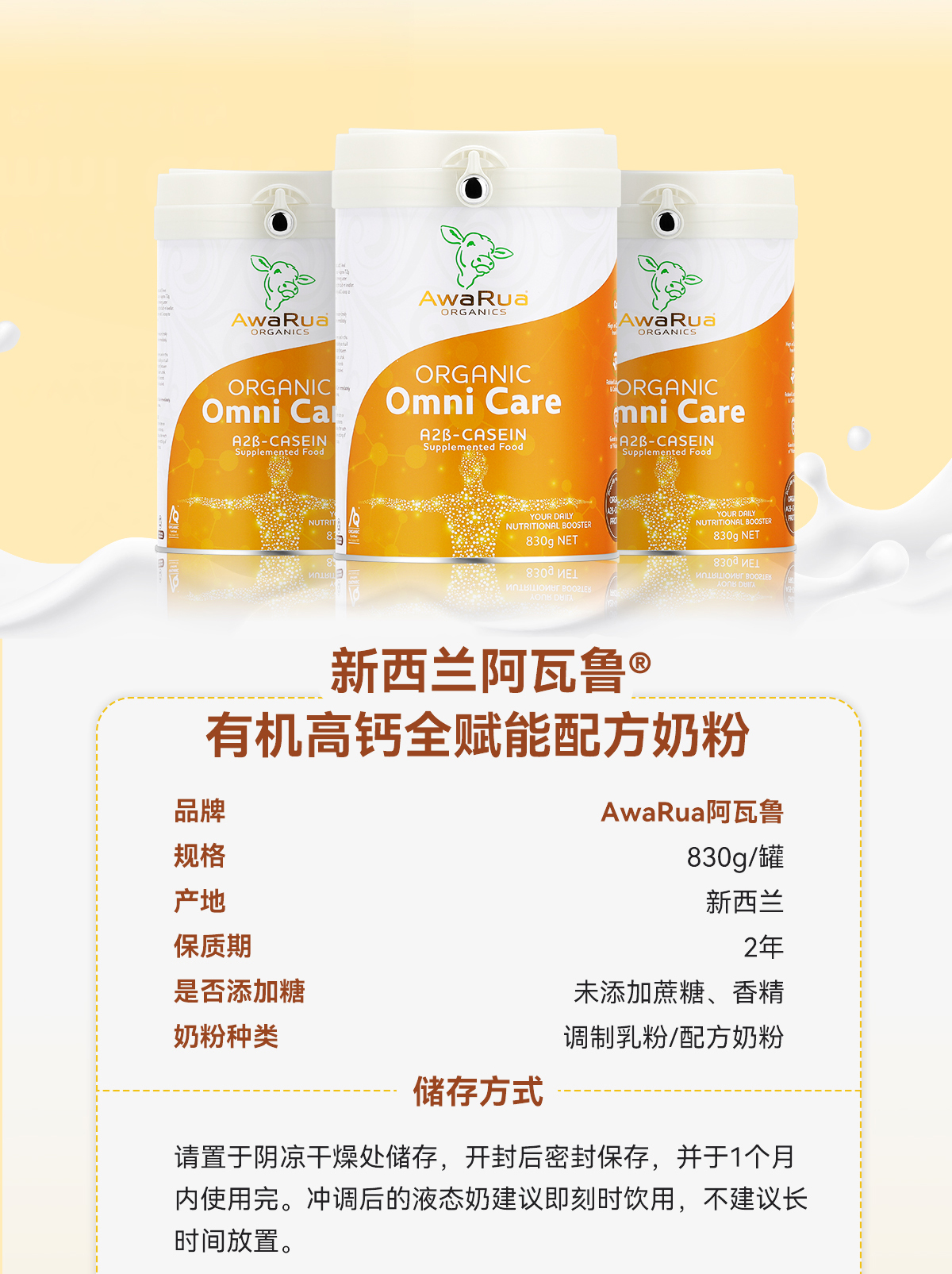 新西兰进口 阿瓦鲁A2有机高钙全赋能营养奶粉(罐装 )830克