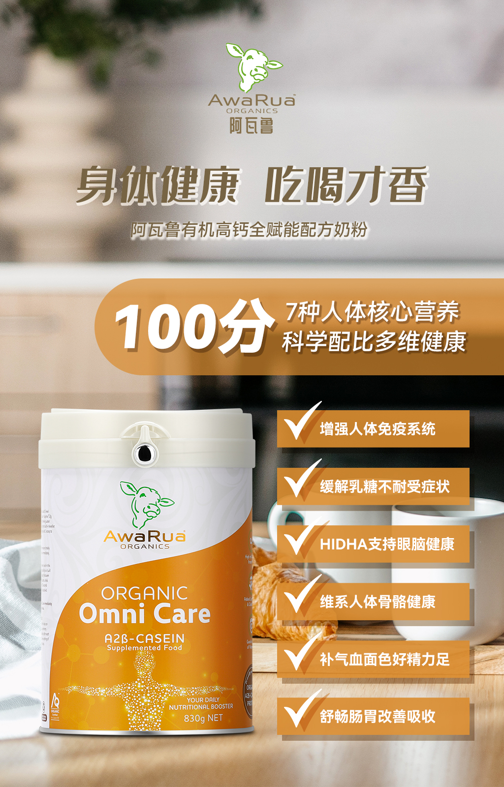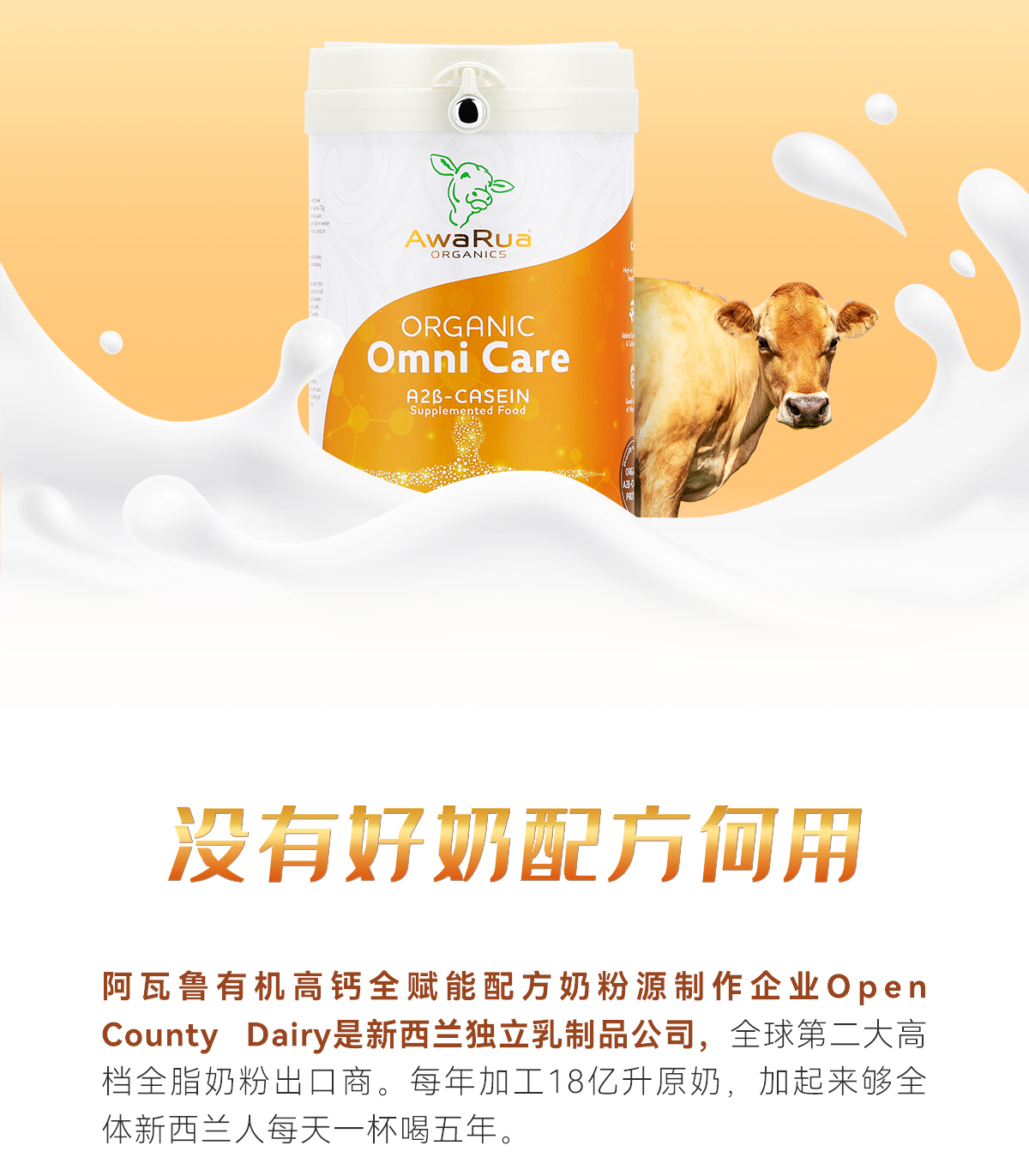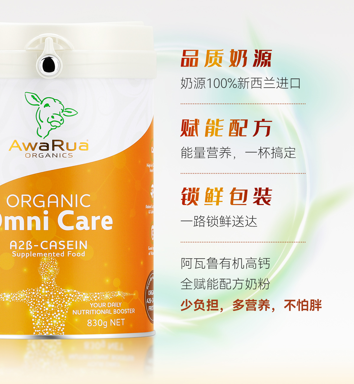 新西兰进口 阿瓦鲁A2有机高钙全赋能营养奶粉(罐装 )830克