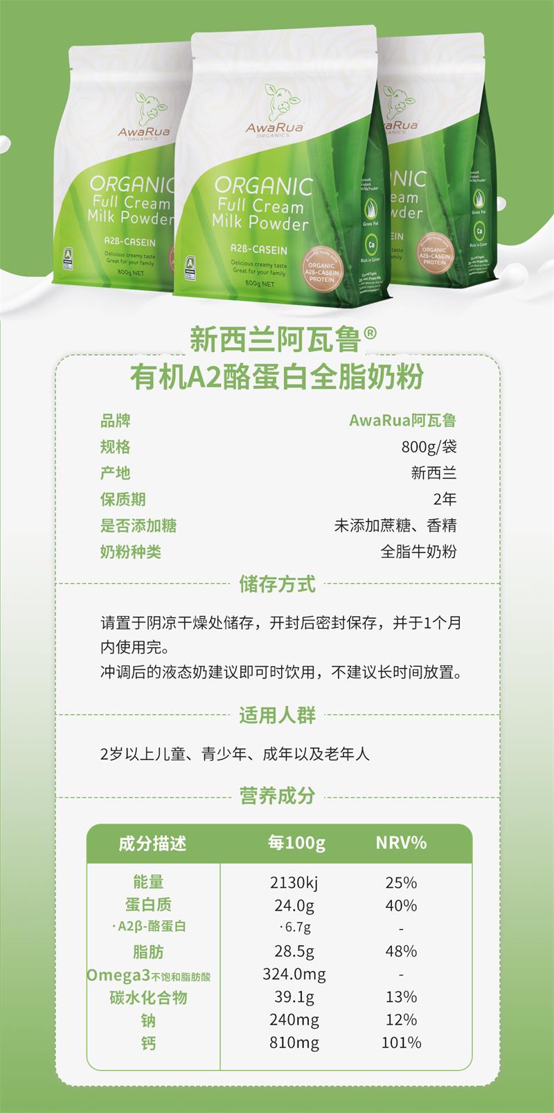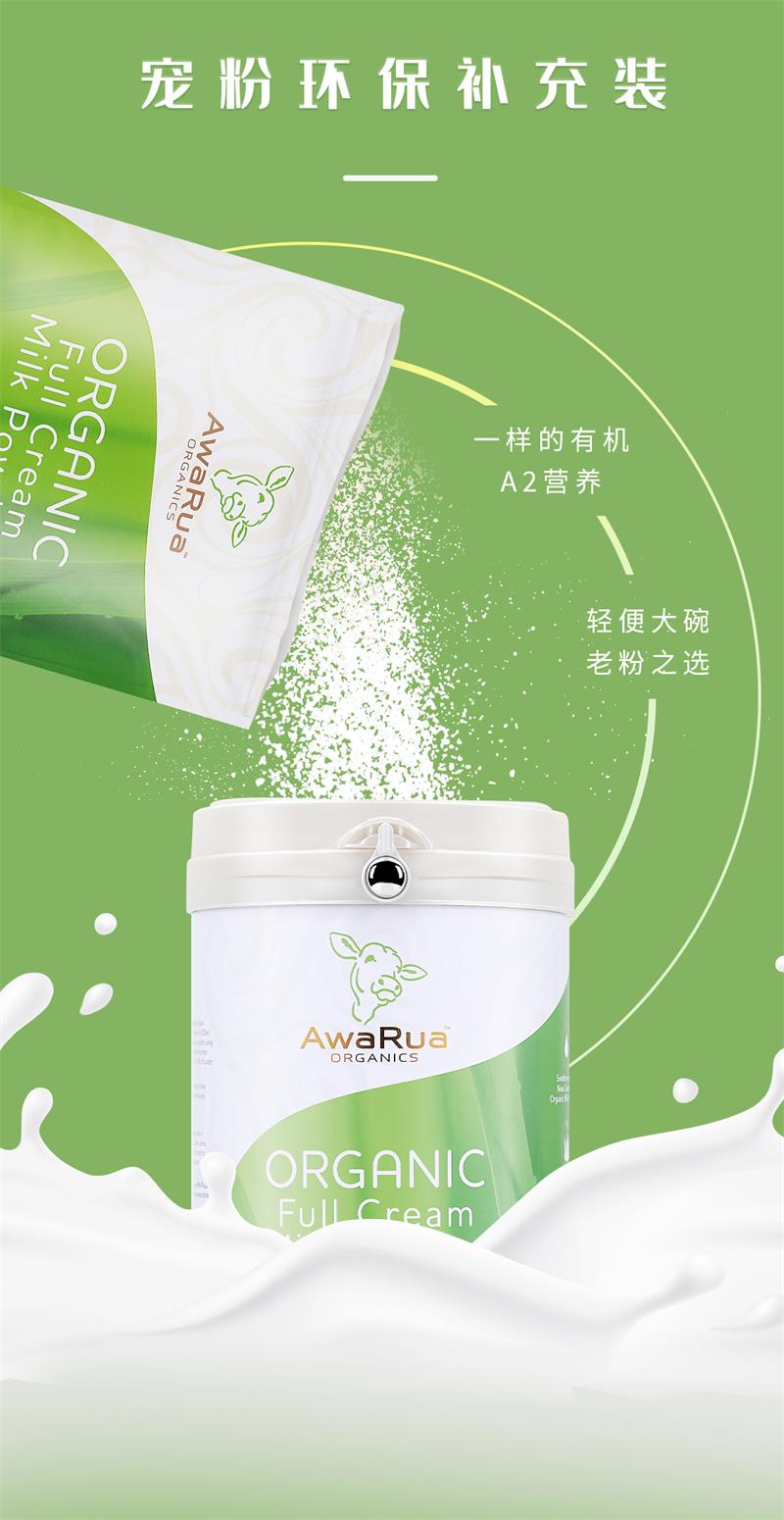 新西兰进口 阿瓦鲁A2有机全脂奶粉Mini(袋装)400克