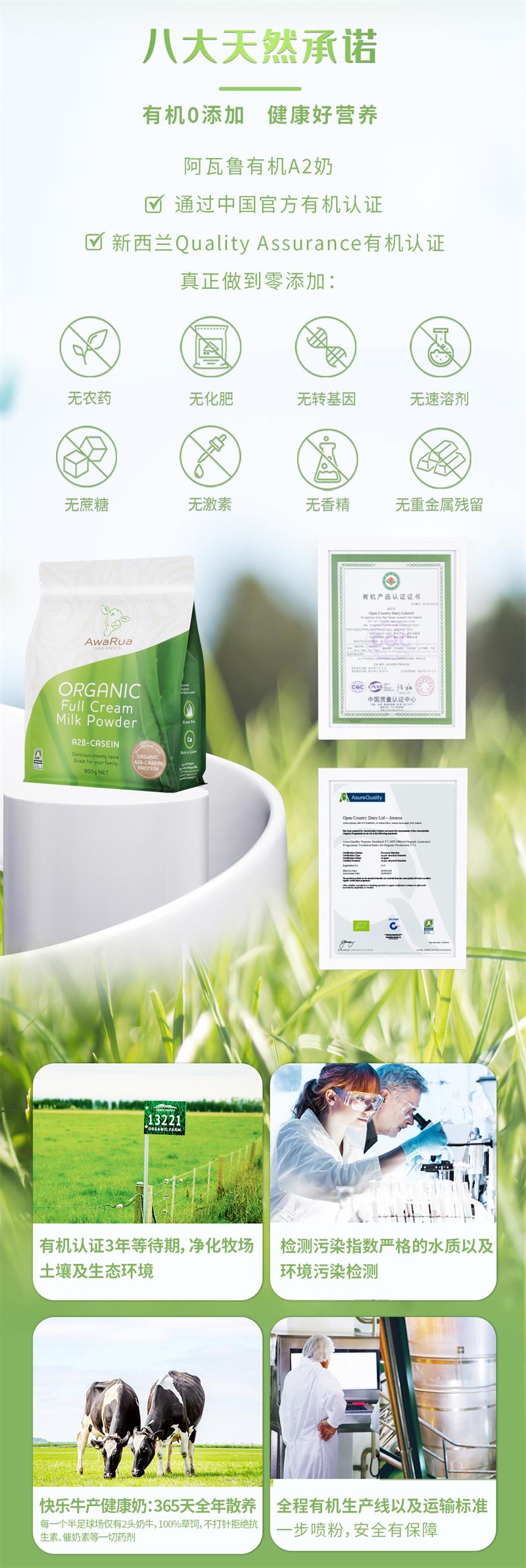 新西兰进口 阿瓦鲁A2有机高钙全赋能营养奶粉(罐装 )830克
